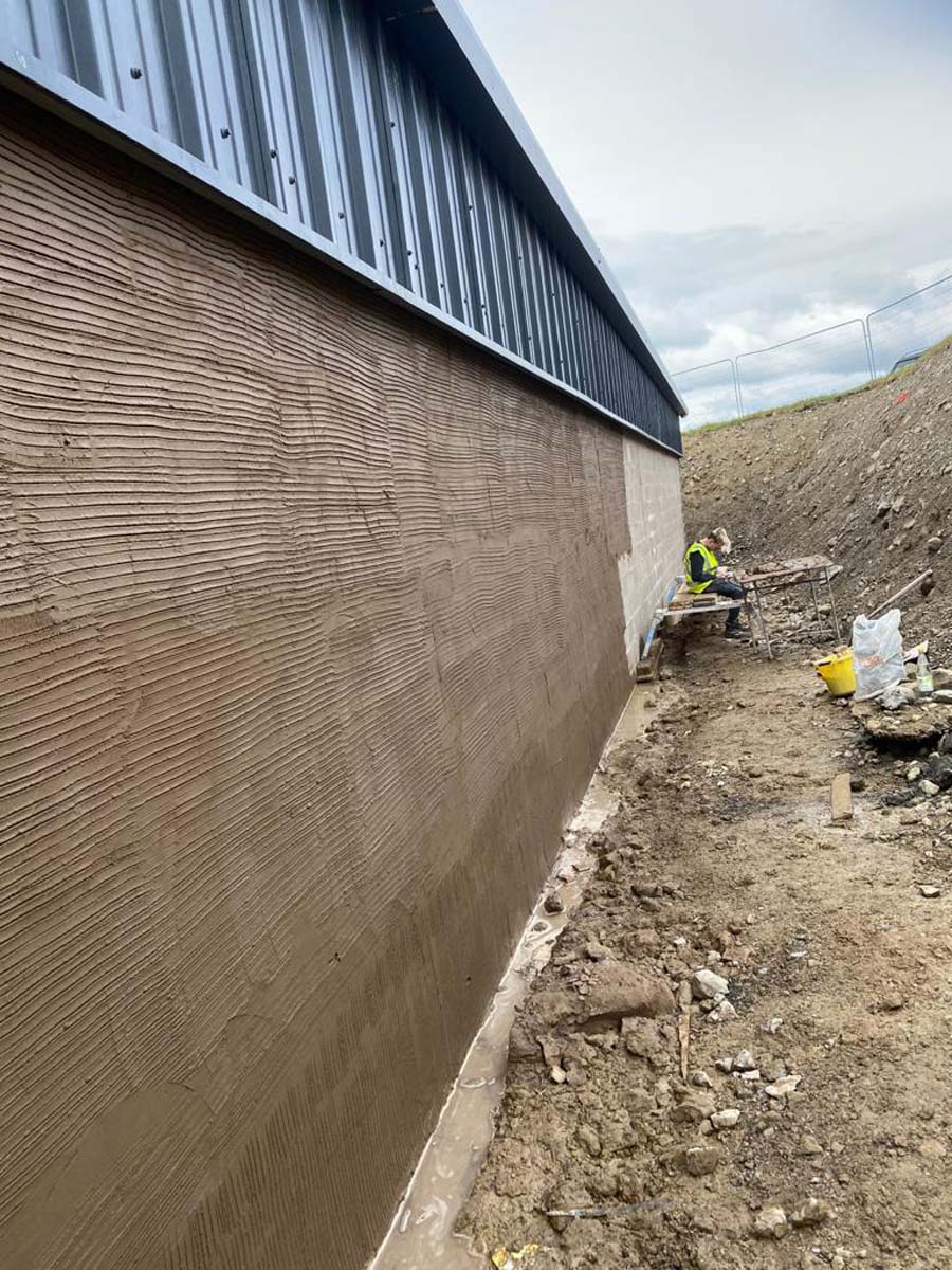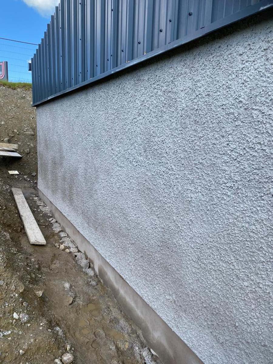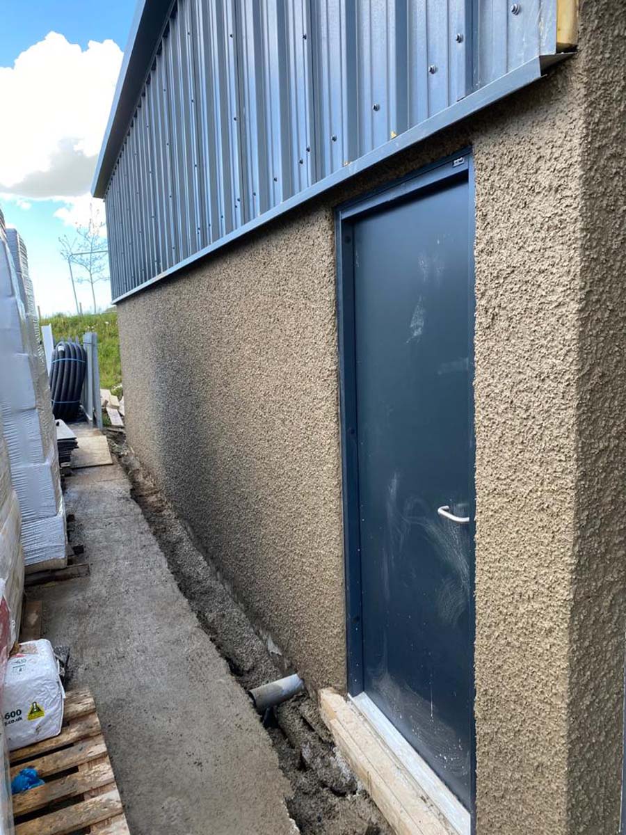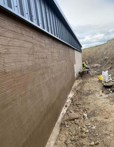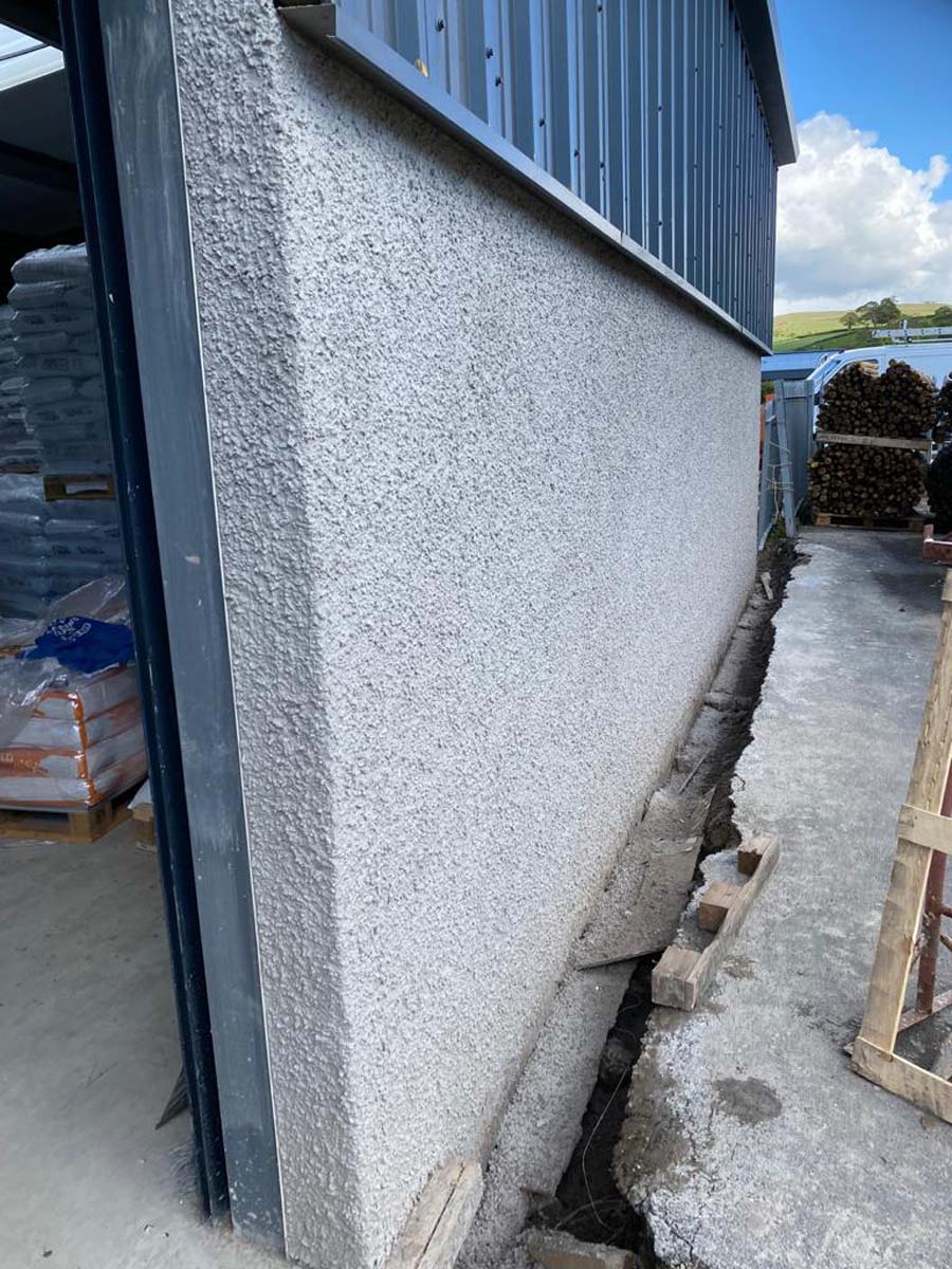 This one was a commercial unit at M6 Junction 36. We used a self coloured Wetdash finish, with a stainless steel bell cast and smooth band below.